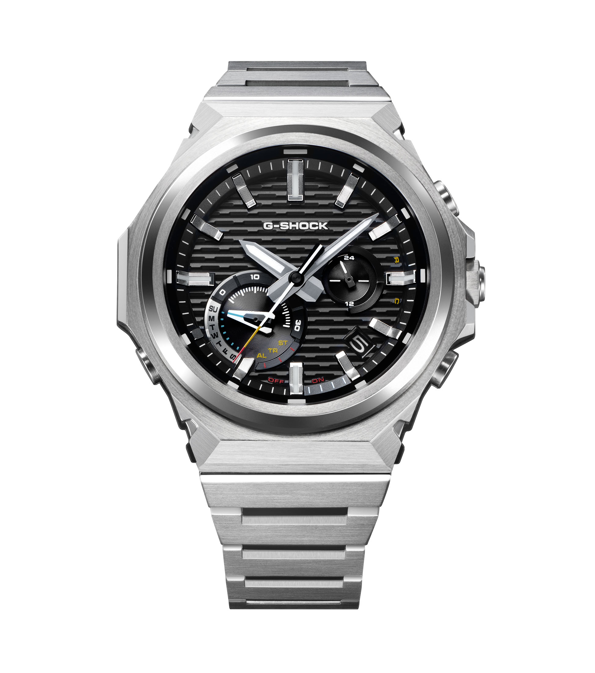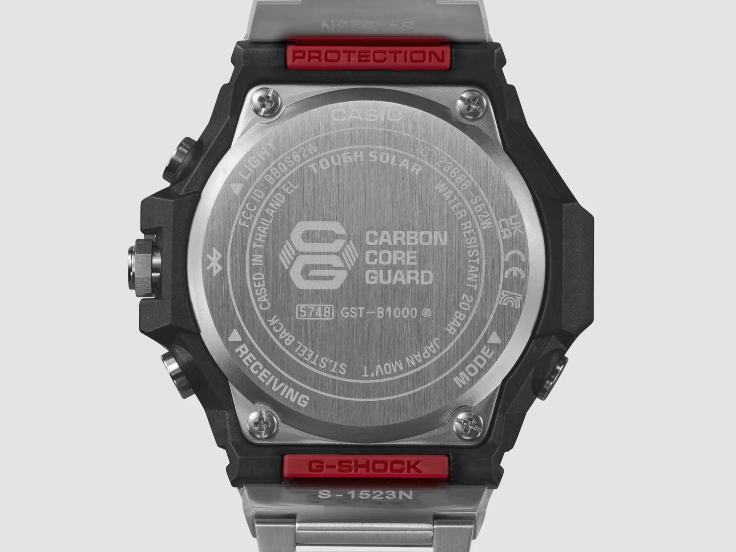 Ensimmäinen G-SHOCK (DW-5000C, 1983) toi maailmaan “tough watch” -ajattelun. GST-B1000 jatkaa samaa perintöä metallisena kellona, jossa on moderni, hillitty ilme. Punainen, sininen ja keltainen korostus kellossa viittaavat alkuperäiseen – haasteisiin tarttumiseen, vesitiiviyteen ja iskunkestävyyteen.